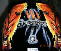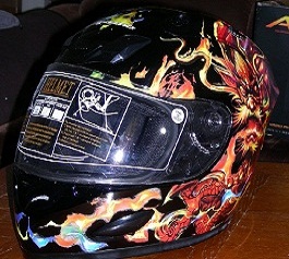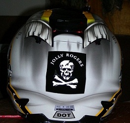Between 6 & 8 air vents [depending on style] and custom trademarked graphics by renowned artist Mike La-vallee from “Killer Paint Inc.” Helmets Made of Hand Laid Fiberglass/ Kevlar Composite with a UV Resistant Clear Coat. They are DOT & ECE 22-05 Certified. "JET GEAR FOR YOUR STREETBIKE"