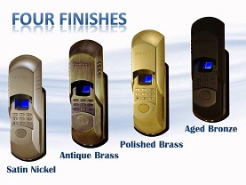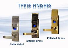Color Options: Satin Nickel, Aged Bronze, Polished or Antique Brass. BioBolt EVO 3 Deadbolt Specs: holds 99 users, No Audit Trail.
