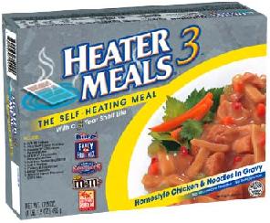 HeaterMeals Entrees, on the other hand, were nutritionally designed "Survival Foods". The 12 ounce main entrees in HeaterMeals are 50% larger than 8 ounce MRE Entrées.