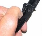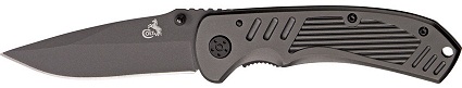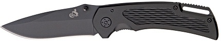 Model CT335 CRT knife is a 3.75” Black coated drop point 440A Stainless Steel blade Black horizontal groove aluminum handles a lanyard hole to the back. A smooth thumb stud and pocket clip are also included.