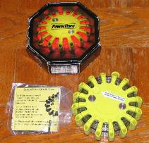 About the size of a hockey puck, it’s strong enough to withstand being run over by trucks at highway speeds, even fire trucks or armored vehicles. PowerFlare® PF-200 carries a 10 yr. storage life
