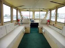 Range; 300NM, Engine: Caterpillar C9 375HP Diesel, Cruise Speed: 35 knots., Max Speed: 70 knots, Sea State: up to Force 6, Length: 14.45 meters, Beam: 5 meters, Cabin Height: 2 meters and an 800 rpm “Pitch in Motion” low noise propeller.