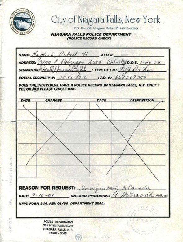 In 1999 I went into Canada and hand delivered the criminal information found in the PDF above and put the Canadian Government on alert for any and all persons using the name Robert English as potential terrorists.