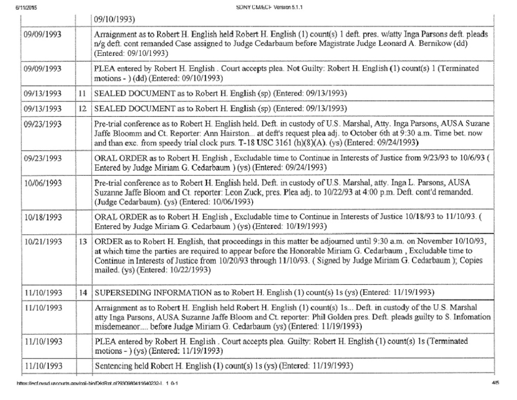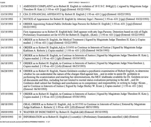 In 1993 to force the federal government to address my 17 year identity fraud [FTC Ref #1979409] case I volunteered to go inside MCC, N.Y. after the 1993 Trade Center Bombing for the U.S. Air Force. After 5 months over 200 arrests of a.k.a. Robert English’s was affected in Georgia, Illinois, Indiana, Florida, Alabama, Mississippi, N.J., N.Y., Massachusetts, North & South Carolina.