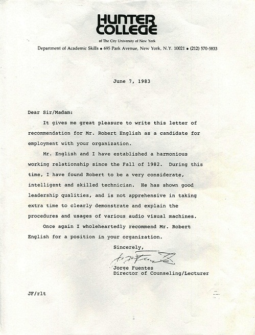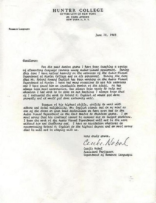 Flashback #3: 1983 Hunter College I was hired on a grant to help upgrade their AV services on paper. In reality I was hired to clean up the mess of a mediocre AV [Ray Nutkis] Director.