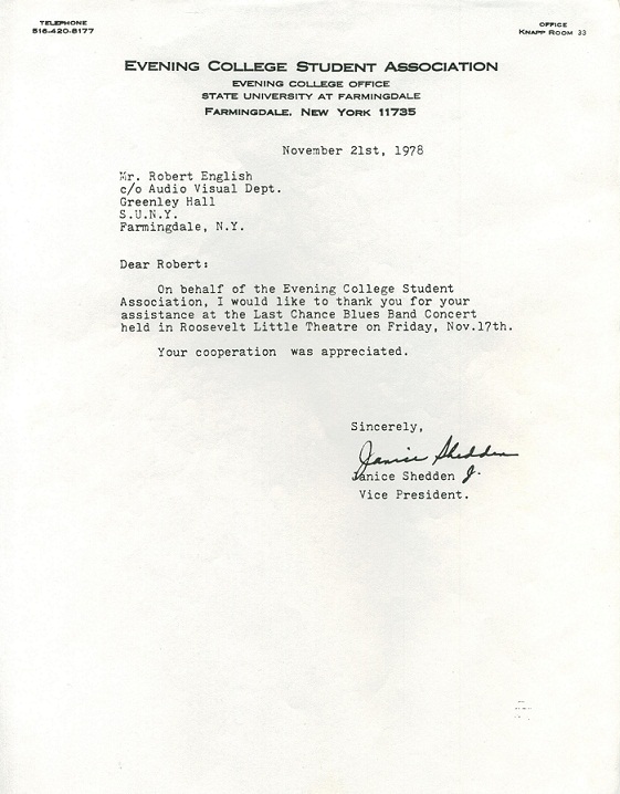 1975-76 interested in “Studio Recording” work I attended SUNY Old Westbury two nights [Non-matriculating] taking music theory with Jazz musicians Richard Harper & Ken McIntire.