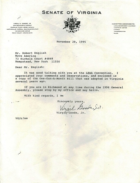 After the court NYC case I testified to Congress in 1996 through 4th District, Nassau County, N.Y. House of Representative Dan Frisa. I also had an in depth conversation with then Senator Virgil Goode Jr. 24th District, Roanoke, Bedford County, Virginia regarding the incompetence of the then Mayor Rudolph Giuliani.