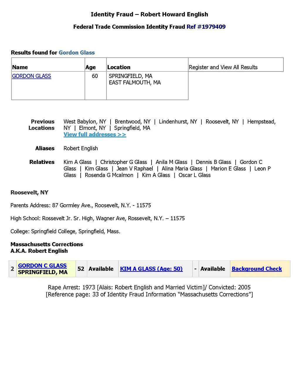 For almost 40 years Gordon Glass avoided incarceration. To this day I truly believe it was with Derek’s assistance. He is still the prime suspect in circulating my information nationwide causing this massive Identity Fraud cover-up.