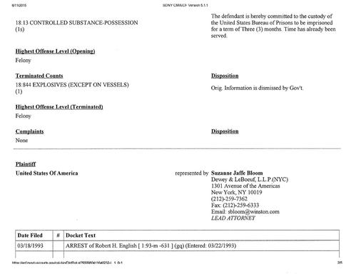 However to date there are approximately 2,557 supposed Robert English’s listed in the entire United States. So how many of these people are really criminals or terrorists hiding behind an honest person’s name. Only one of them turned in the other 350 [at the time] as terrorists in March, 1993 for possession of explosives and tied them the the first World Trade Center Bombing. It is inconceivable that the IRS, F.B.I. or the Federal Marshall’s can be this stupid or incompetent having allowed these “Enemies of the State”, Terrorists, RICO criminals to survive and prosper at the tax payers expense for so long with out so much as a plausible explaination!
